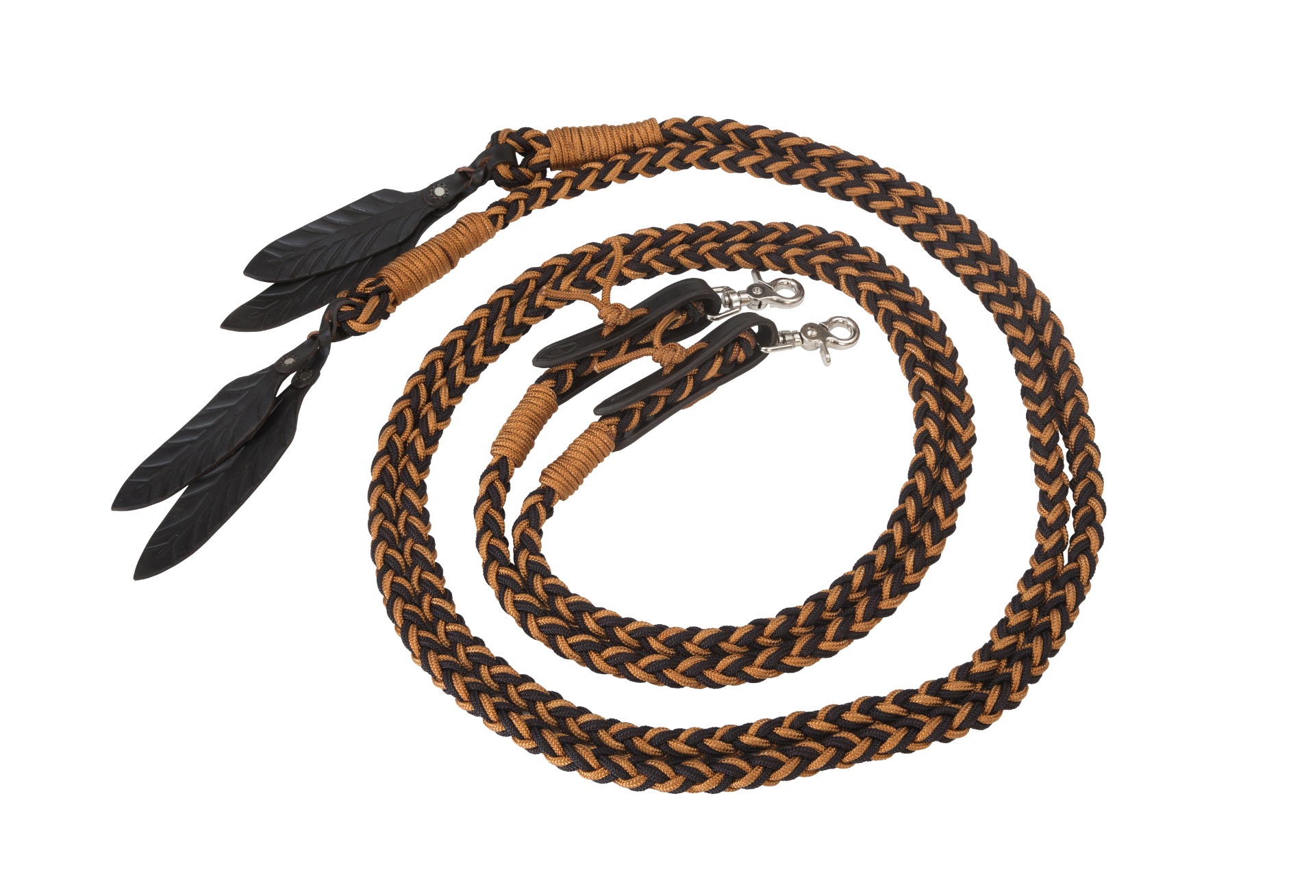 Avoimet, pyöreäksi punotut ohjat käsin punotusta vuoriköydestä. Ohjien päissä on "kärpäshäntä" Barefootin sulan muodossa. Irrotettavat pikalukot.