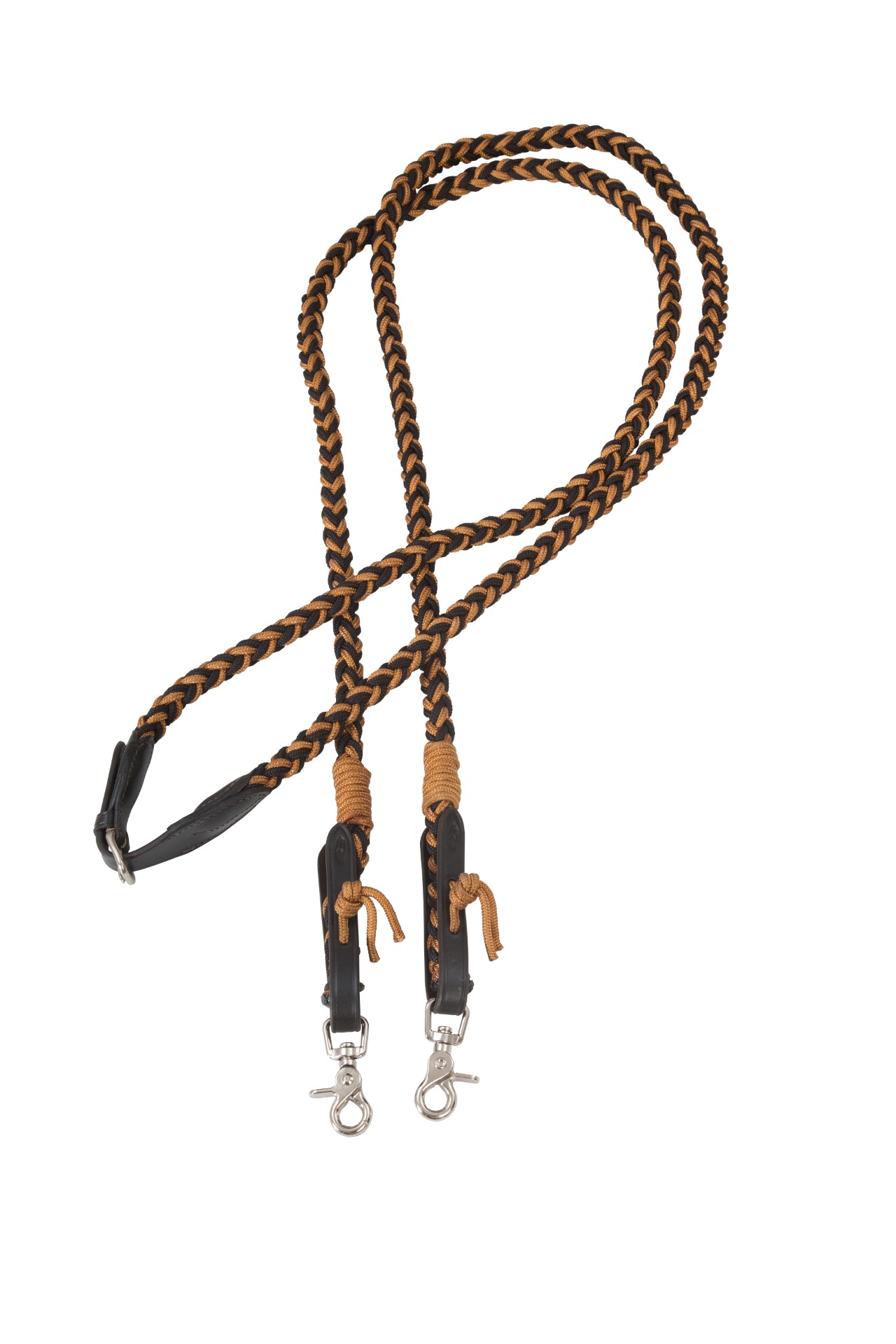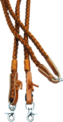 Pyöreäksi punotut ohjat käsin punotusta vuoriköydestä. Soljen avulla ohjat saa helposti avattua ja suljettua. Mukava pituus. Irrotettavat pikalukot.