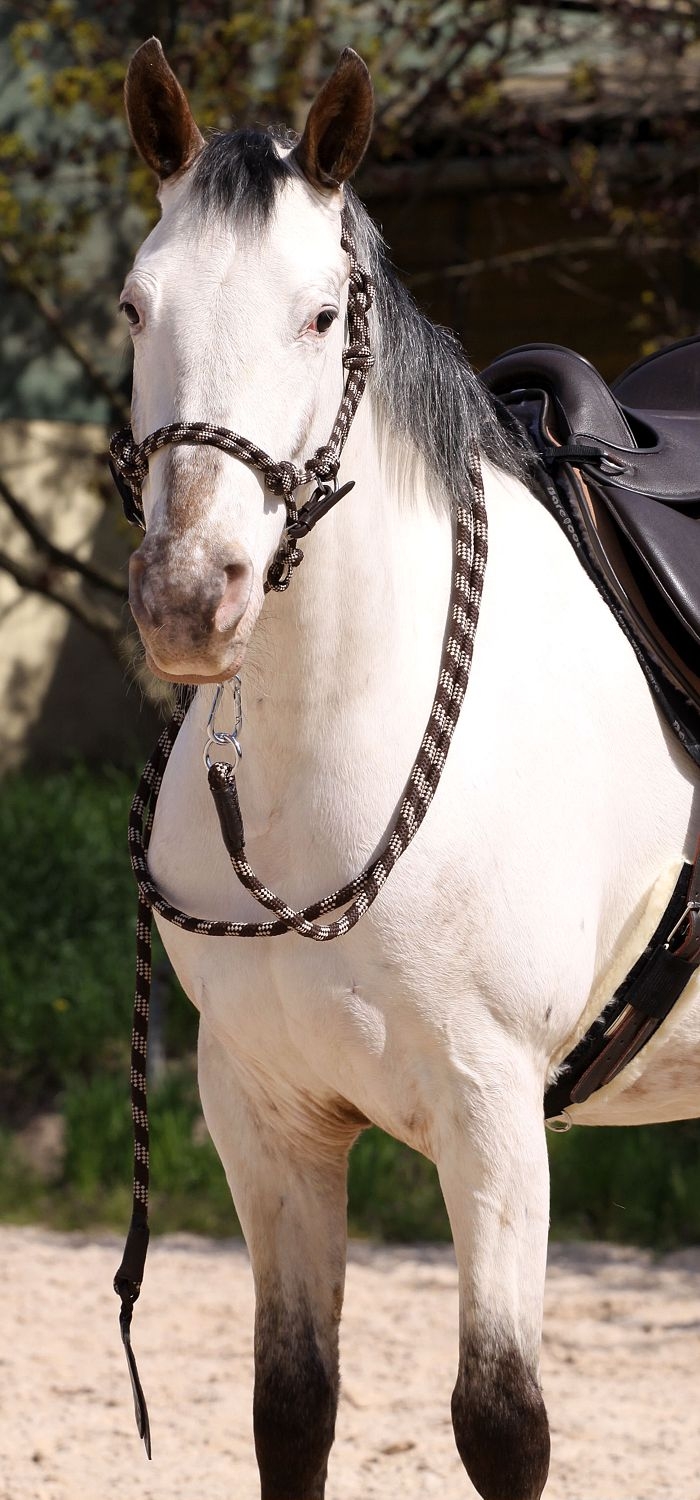 Polypropeenista valmistettu köysi, jossa on puuvillainen ydin. Pituus on ihanteellinen maastakäsittelyyn (4,20 m). Köysi tuntuu kädessä sileältä ja on tavallista köyttä jämäkämpi, joten se on helppo kerätä kiepille ilman sotkeutumista. Päässä on koristeellinen latigo popper Barefoot®-höyhenen tyyliin, edessä tukeva pikalukko.