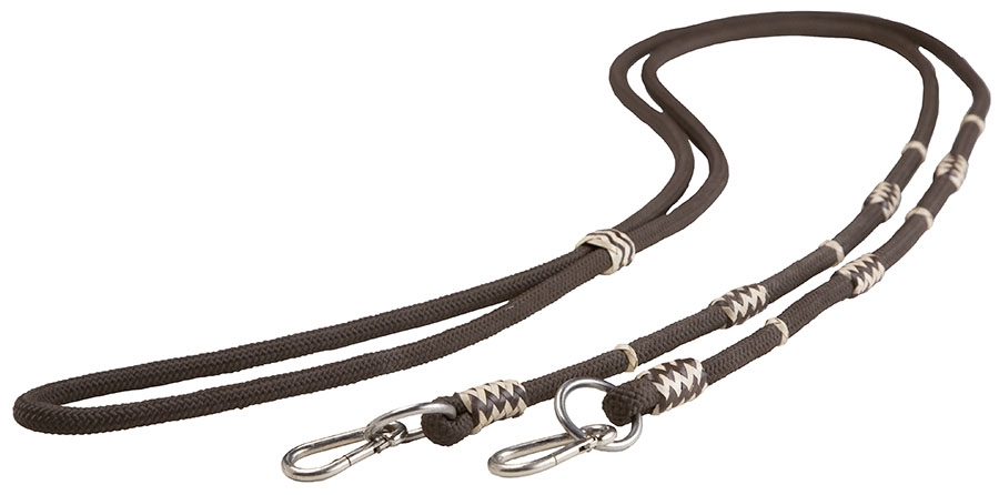 'Seneca'-sarjan suljetut ohjat punotuilla raakavuotakoristeilla. Barefoot®-ohjat 'Seneca' on valmistettu kestävästä polypropeenista, ja niissä on puuvillainen sisäydin. Koristepunokset on tehty laadukkaasta kaksivärisestä raakavuodasta. Karabiinilukot mahdollistavat ohjien nopean kiinnityksen ja irrotuksen suitsista.