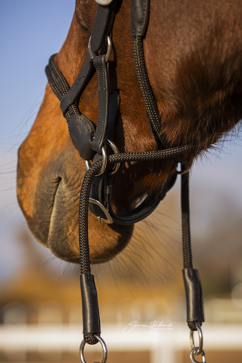 Suitsitus on säädettävissä molemmilta puolilta, ja myös nahkainen leuanalusremmi on säädettävä. Mukana tulee yhteensopivat ohjat, joissa on nahka–köysi -yhdistelmä sekä pikalukolliset hakaset.