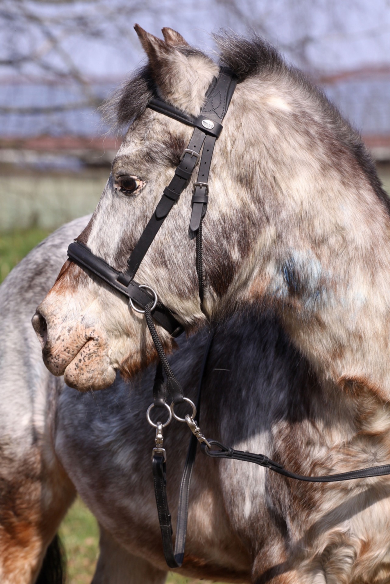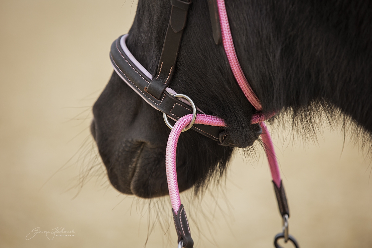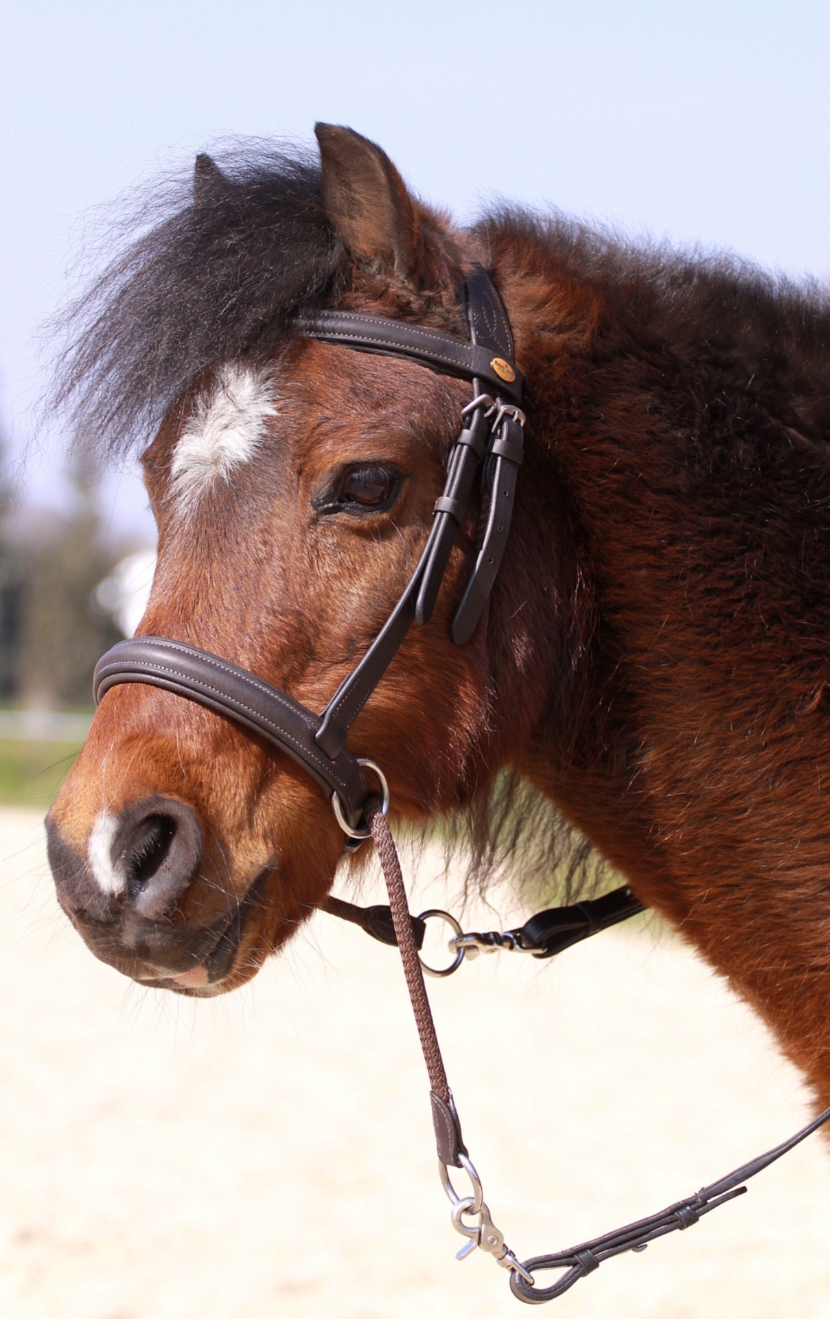 Erityisen leveä, pehmustettu niskahihna vähentämään painetta ponin korvien takana