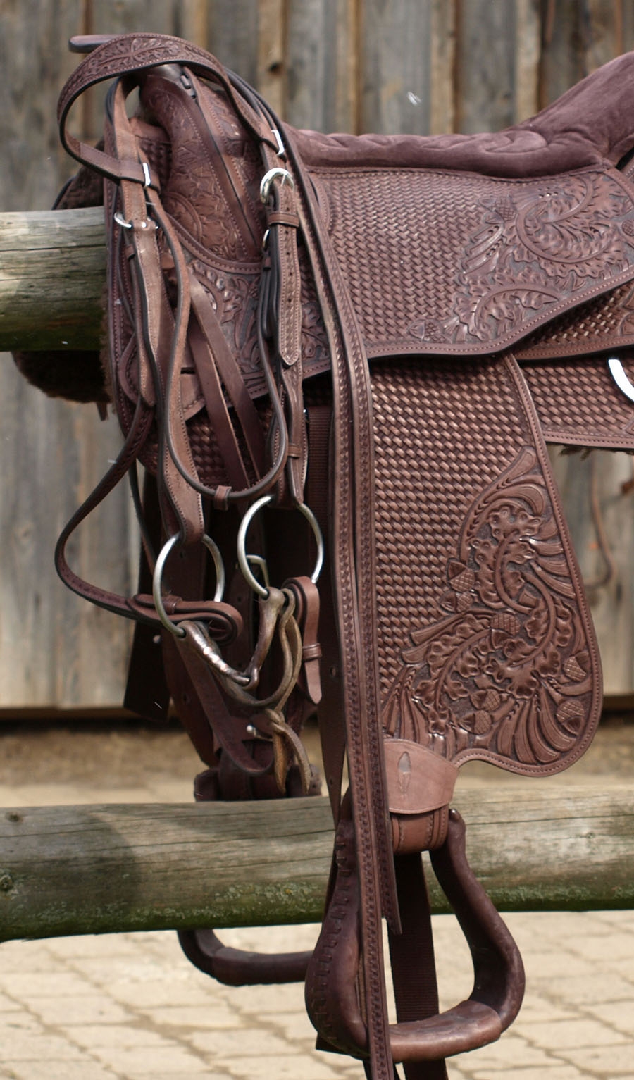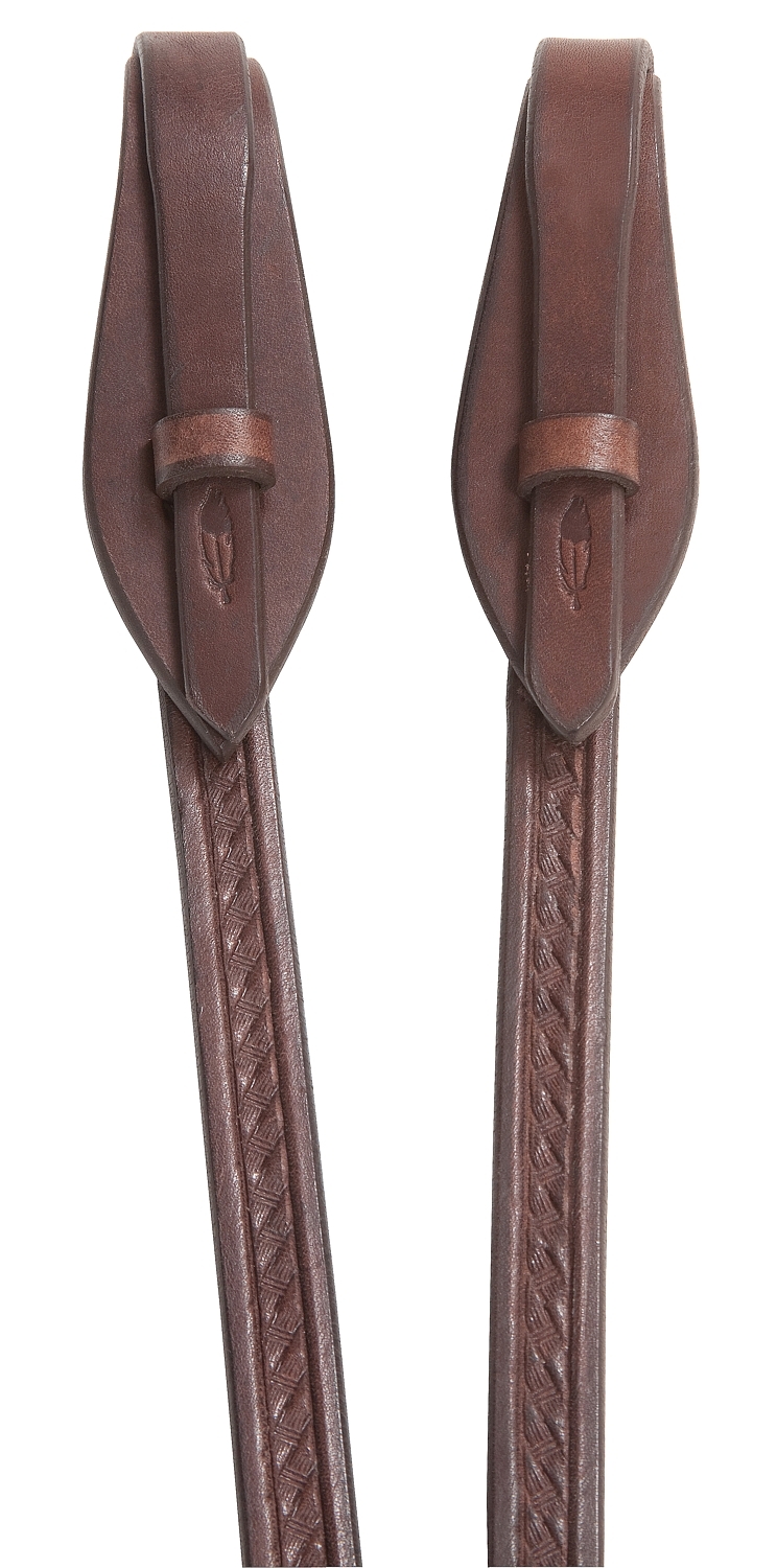 Käsin kuvioidut, avoimet western-ohjat (basket design). Keskipaksu malli, jossa on pikanvaihtosolki. Ohjat on valmistettu jämäkästä, laadukkaasta brasilialaisesta nahasta ja ne ovat reilun pituiset: 2,3 m per ohja. Hyvä pito – leveys vain 1,5 cm.